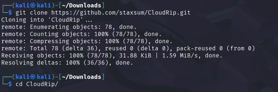 kali> git clone https://github.com/staxsum/CloudRip.git