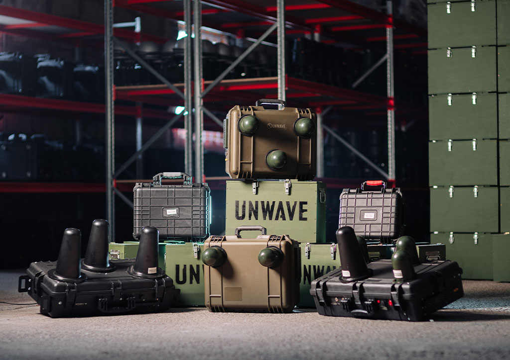 The UNWAVE SHATRO represents cutting-edge personal counter-drone protection. Available in portable, wearable, and mobile versions, this system creates a protective bubble with a radius of 50-100 meters, specifically targeting guided munitions and UAVs operating in the 850-930 MHz range.
