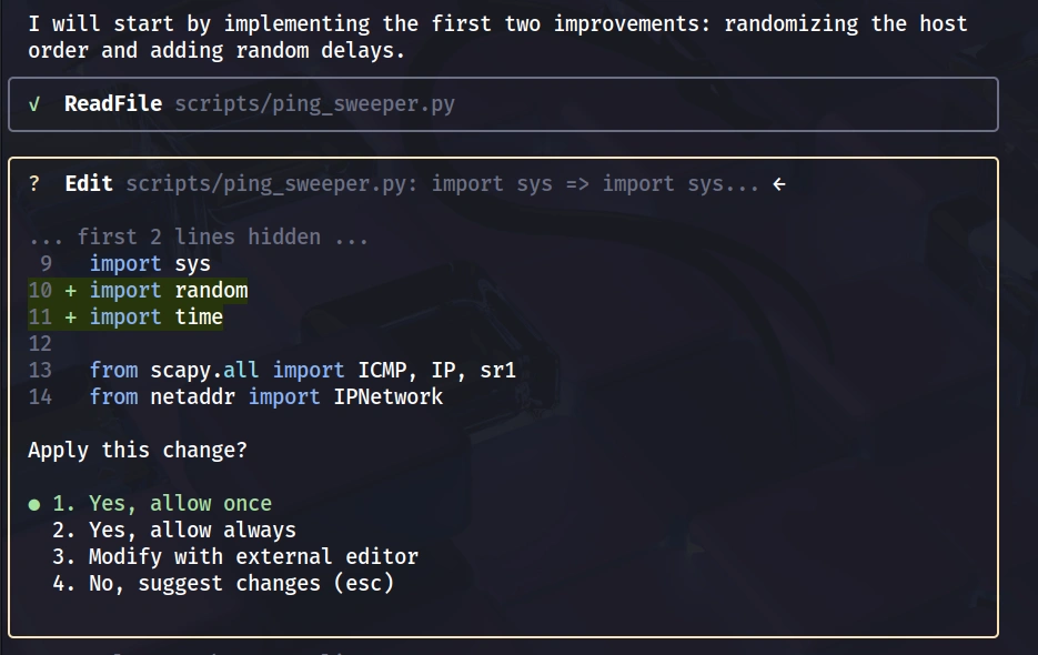 In this article, we examined how the Gemini CLI can boost the effectiveness of writing Python code for cybersecurity, and we highlighted the advantages of using the MCP server along with the built-in tools that Gemini provides by default.