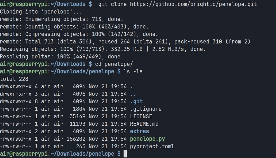 In this tutorial, I will be installing Penelope on my Raspberry Pi 4, but the tool works equally well on any Linux distribution or MacOS system with Python 3.6 or higher installed. The installation process is straightforward since Penelope is a Python script